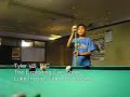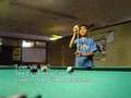 Description: This is Tyler vs Ric playing pool. Tyler got all his solids in and needs the 8 Ball to win. After two misses, tyler got the 8-Ball in the Left-Bottom-Corner Pocket like he said. |